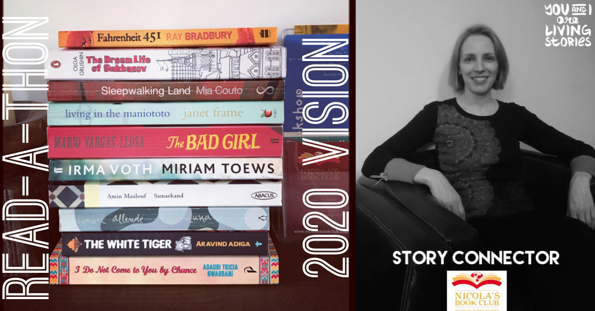 We read one every month from January to June and from September to December. In July and August, Nicola again picked 4 books for her Summer Reading Group. The ten books in our 2020 readathon were: